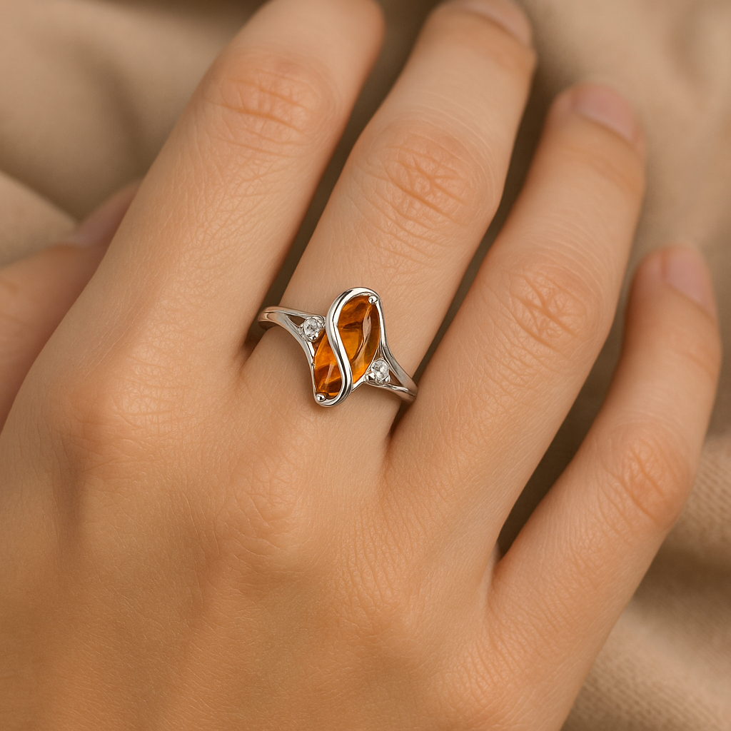 The Sevara Citrine Twist Ring is a radiant blend of elegance and warmth, featuring a beautifully faceted citrine gemstone embraced by a unique twist-inspired sterling silver design. The bright golden hue of citrine symbolizes joy, success, and positive energy, making this ring an uplifting addition to your jewellery collection. Crafted in 925 sterling pure silver, this refined piece brings together modern charm and classic allure.