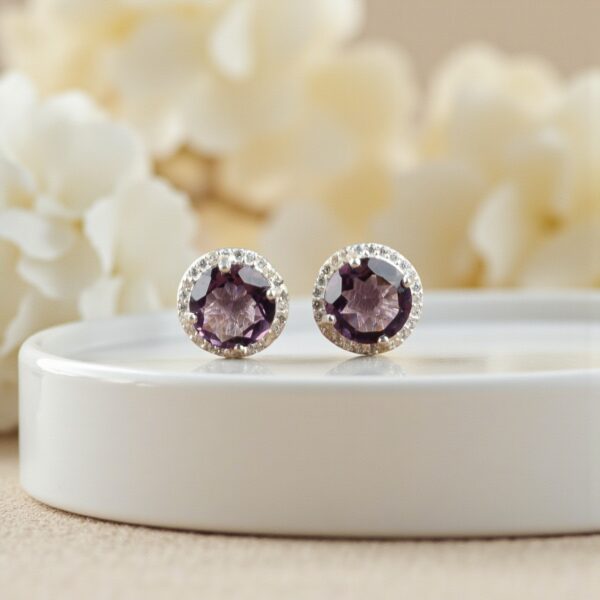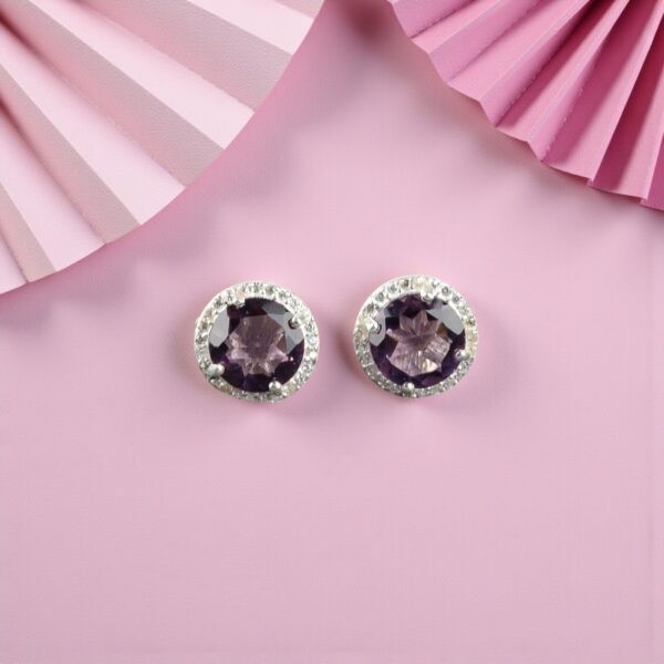 Discover the elegance of the Sevara Amethyst Spark Studs, crafted in pure silver pendant, 925 sterling silver, and designed to add a refined glow to your everyday style. These 925 sterling silver pendant–inspired studs feature captivating amethyst stones surrounded by a shimmering halo of brilliance, making them a versatile and graceful addition to any jewellery collection.