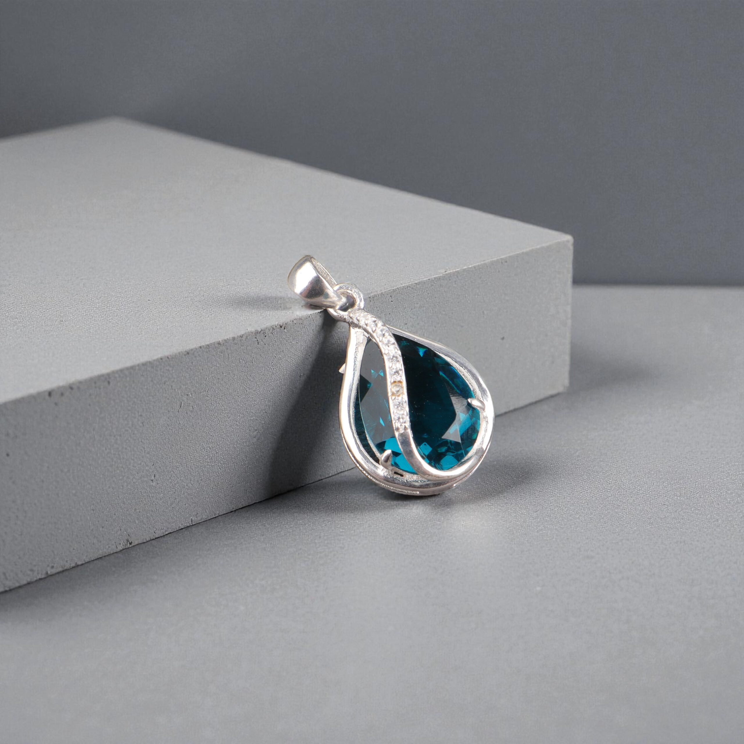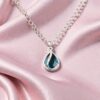 Elevate your elegance with the Sevara Blue CrystalWave Pendant, a stunning fusion of shimmering curves and a deep ocean-blue teardrop crystal. Crafted in 925 sterling silver, this pendant adds a refined glow to your everyday and evening looks.