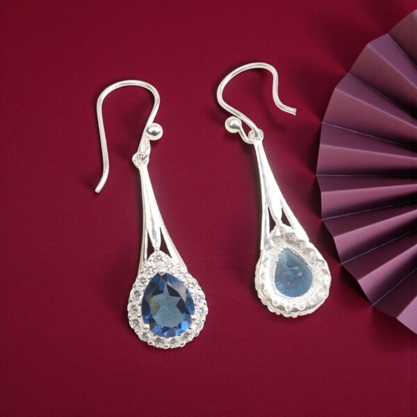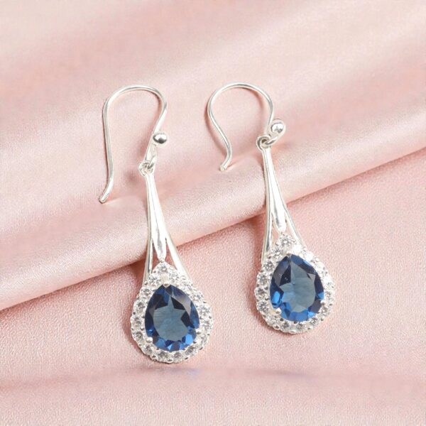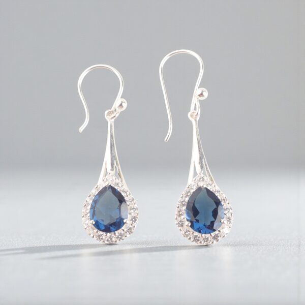 Introducing the Sevara Blue Mirage Drops, a mesmerizing pair of earrings crafted for women who adore elegance with a touch of mystery. Designed in premium 925 sterling silver, each earring features a breathtaking deep blue teardrop crystal, framed by a halo of shimmering stones—radiant, refined, and irresistibly timeless.