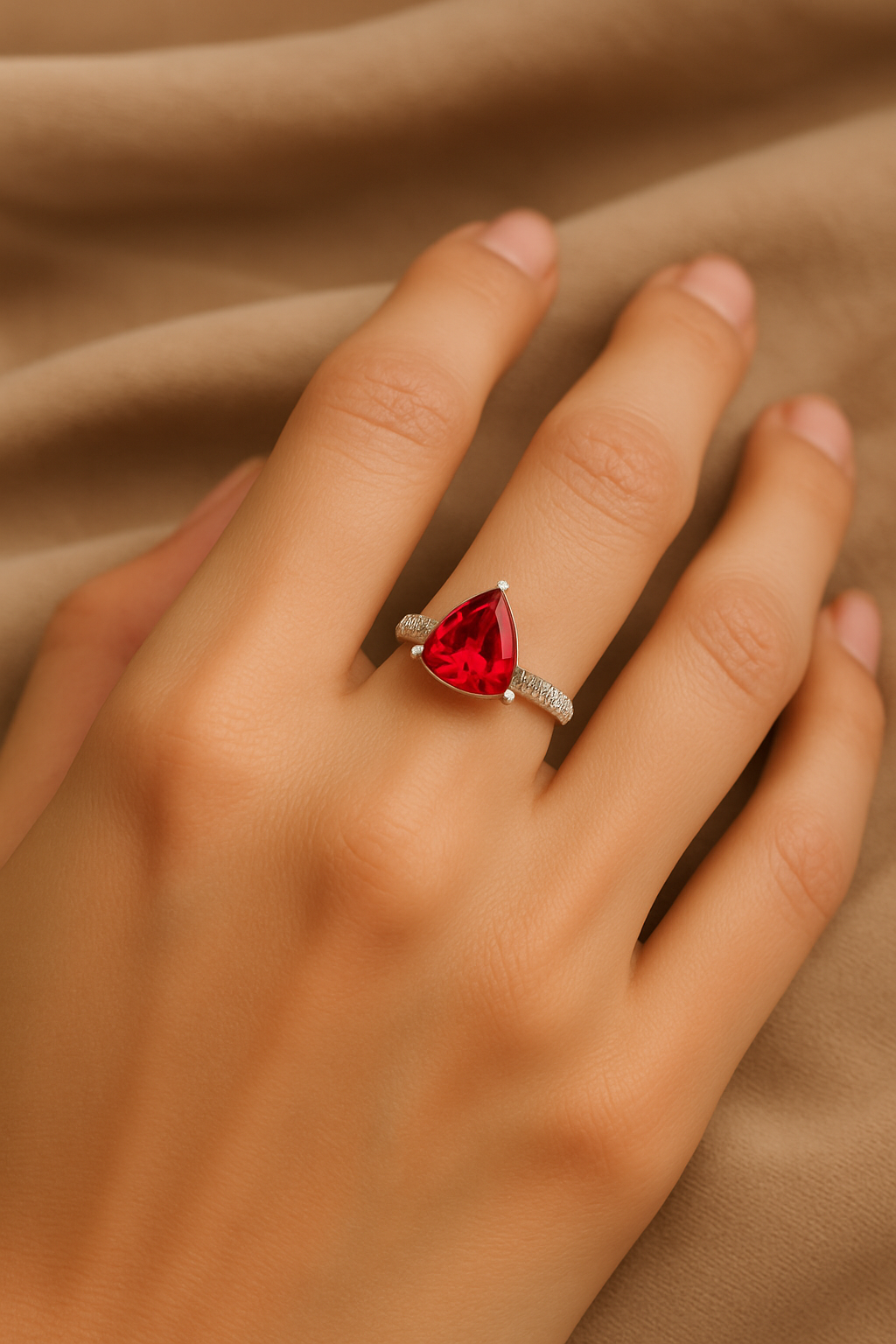 • Stunning cherry-red gemstone with a bold yet graceful presence