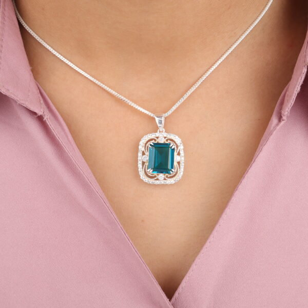 Its regal rectangular silhouette makes it an eye-catching centrepiece perfect for evening wear, gifting, or elevating everyday outfits. Designed for durability and comfort, the pendant is set in high-quality 925 sterling silver, ensuring a radiant shine that lasts.