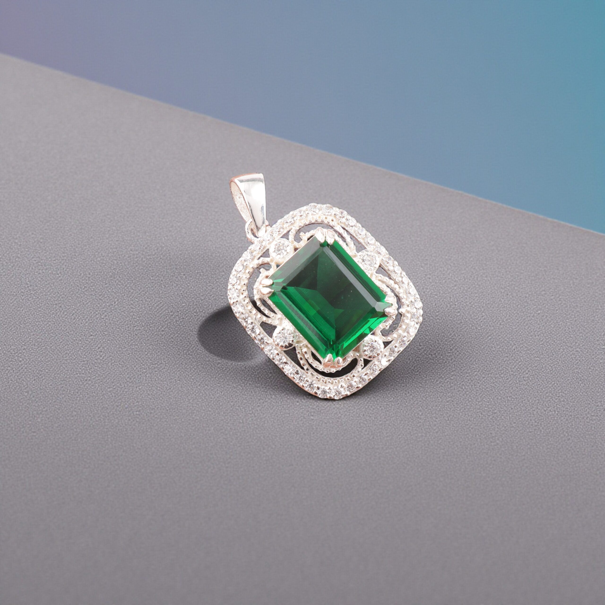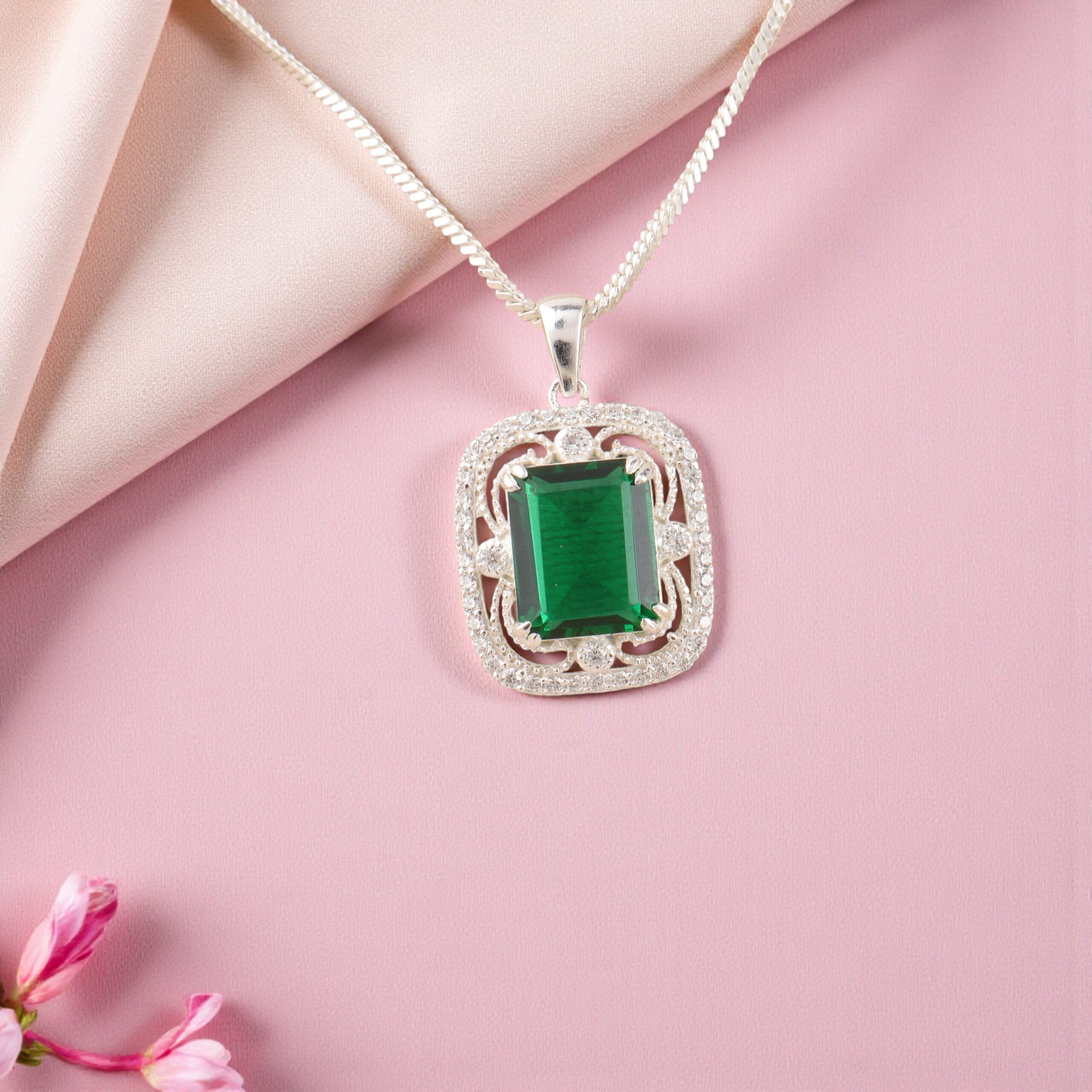 Introducing the Sevara Emerald Crown Pendant, a masterpiece crafted to radiate elegance and grace. Designed with a stunning emerald-cut green gemstone at its heart, this pendant is framed by an intricately detailed crown-inspired motif, symbolising confidence, royalty, and inner strength.