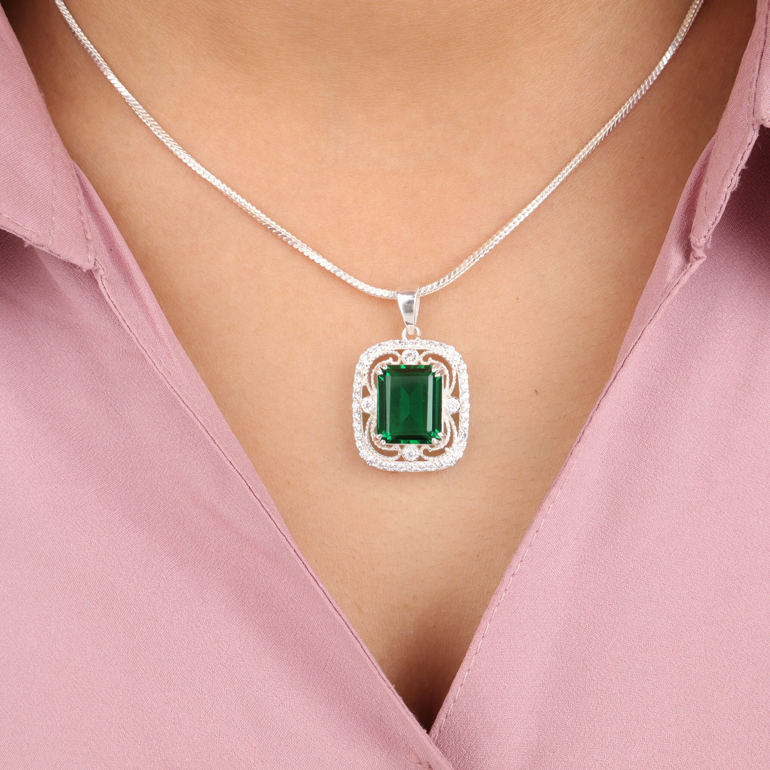 Made with 100% pure silver, this 925 sterling silver pendant reflects a timeless charm that elevates any outfit — casual or formal. Its sparkling cubic zirconia accents complete the regal aura, making it a must-have statement jewellery piece for every woman.