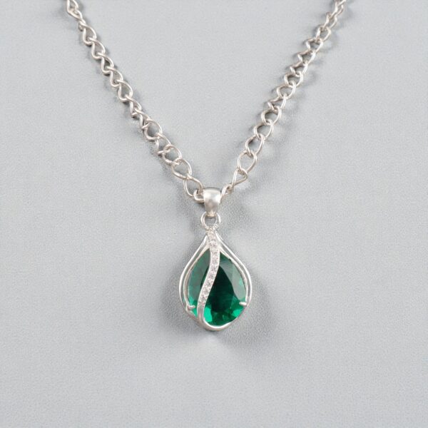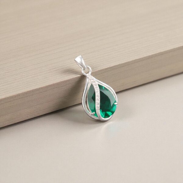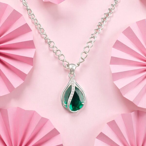 Introducing the Sevara Emerald CrystalWave Pendant, a stunning fusion of elegance, symmetry, and vibrant colour. This pendant features a mesmerising emerald-green pear-shaped crystal wrapped in a smooth, wave-like silver embrace, symbolising strength, calm, and graceful flow. Crafted in 925 sterling silver pendant, it pairs beautifully with both everyday wear and special occasions.