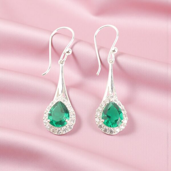 Be the first to review “Sevara 925 Sterling Silver Green Emerald Halo Drops For Women”