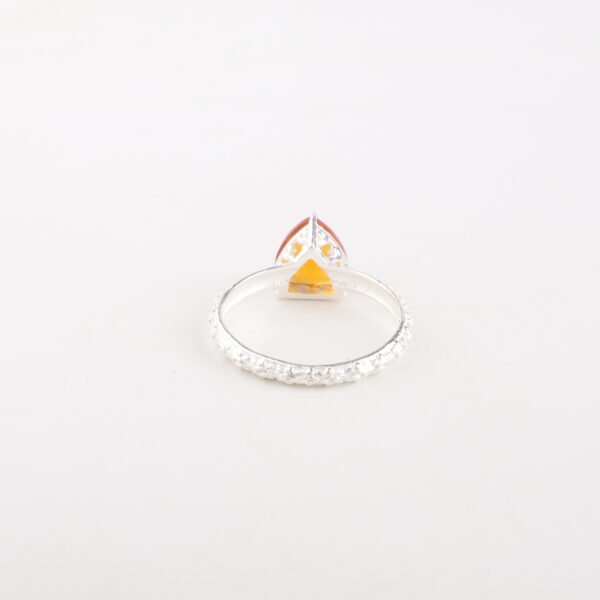 Ignite your style with the Sevara Golden Flame Ring, a radiant masterpiece crafted in 925 sterling silver. Featuring a brilliant triangular golden gemstone, this ring captures the warmth of sunlight and the elegance of fine artistry. The intricately detailed band adds a touch of sophistication, making it perfect for everyday elegance or special occasions.