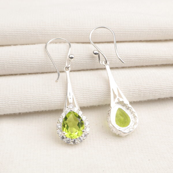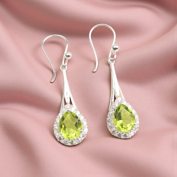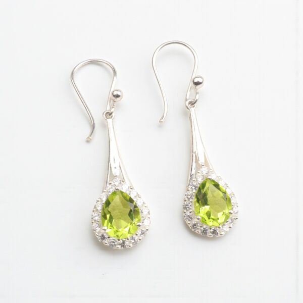 Introducing the Sevara Grace Teardrop Earrings, a stunning celebration of elegance and radiance. Featuring a vibrant peridot-green teardrop gemstone surrounded by a halo of shimmering stones, these earrings capture the essence of timeless beauty. The sleek elongated drop design enhances their graceful movement, making them perfect for both everyday wear and special occasions.