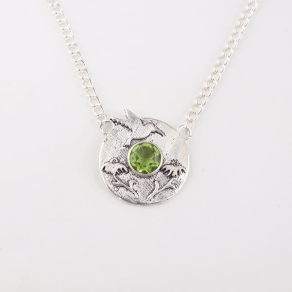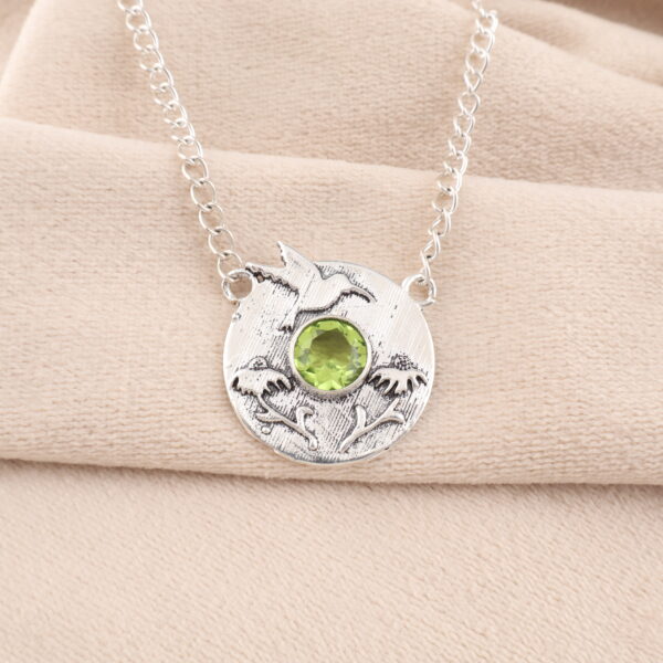 The Sevara Green Breeze Pendant captures the serene beauty of nature with its soft engraving of birds in flight and a refreshing green gemstone at the center. Crafted in pure 925 sterling silver, this elegant pendant adds a calming yet stylish touch to any outfit. Perfect for women who adore meaningful jewellery with a nature-inspired theme.