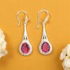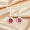 Ignite your elegance with the Sevara Rosefire Halo Drops, a stunning pair of earrings crafted to illuminate your look with warmth and sophistication. Featuring radiant rose-red pear-shaped crystals encircled by a shimmering halo of high-quality CZ stones, these drops blend timeless beauty with modern charm.
