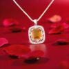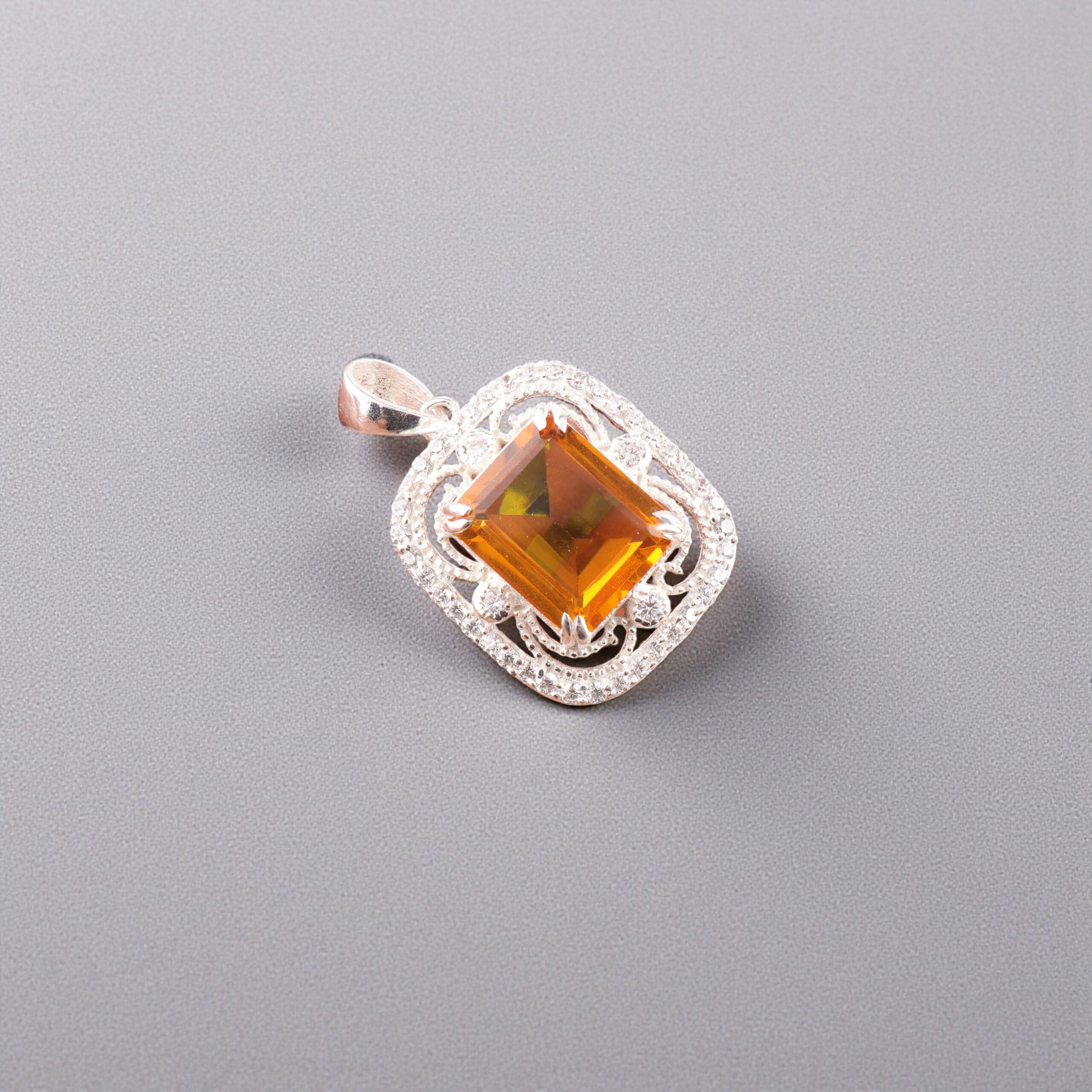 Elevate your elegance with the Sevara Royale Pendant, a masterpiece crafted in premium 925 sterling silver and adorned with a radiant golden-hued gemstone. Its statement square-cut centre stone is framed with detailed vintage-inspired motifs, adding richness, charm, and effortless luxury to your everyday or festive style.