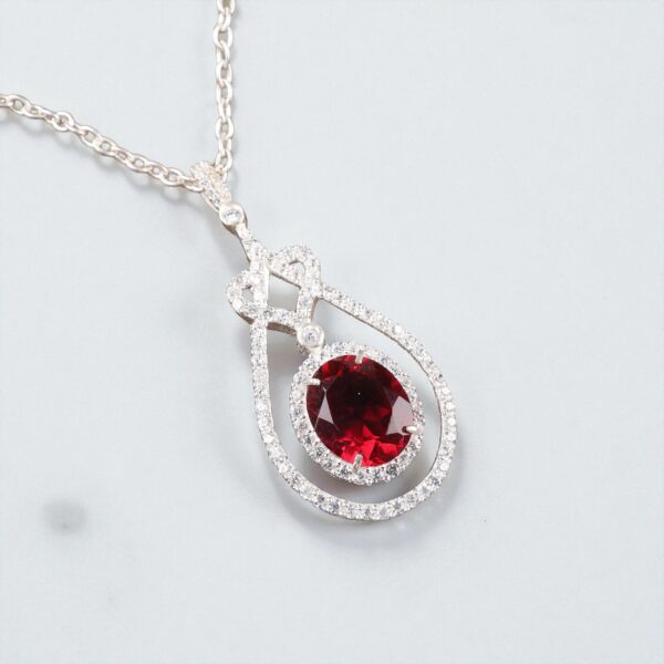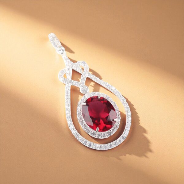 Elevate your elegance with the Sevara Scarlet CrystalDrop Pendant, featuring a stunning deep-red crystal framed in a dual teardrop halo. Crafted in 925 sterling silver, this pendant captures luxury, sparkle, and timeless charm—perfect for gifting or elevating any outfit.