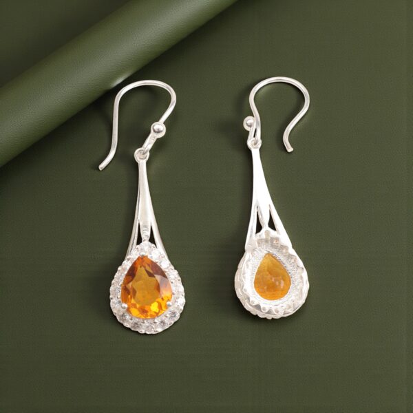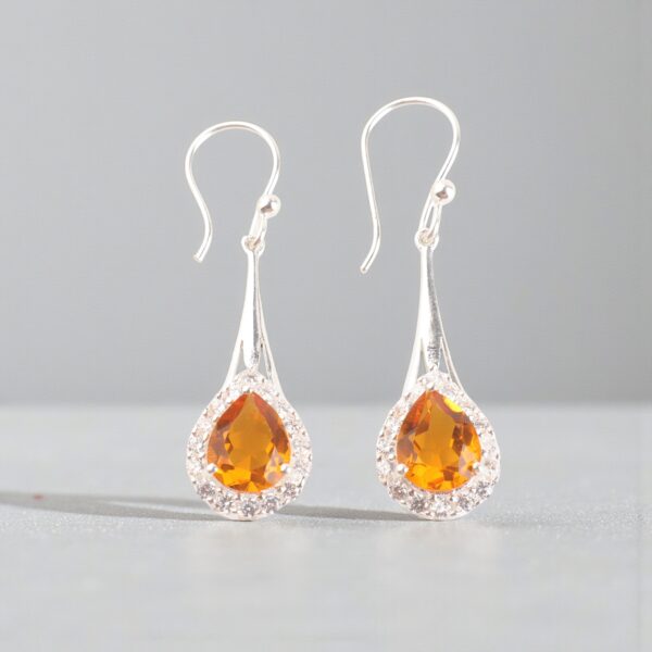 Introducing the Sevara Sunset Spark Drops, a stunning pair of earrings that radiate warm golden brilliance with every movement. These elegant drop earrings feature a pear-cut sunset-orange crystal, delicately framed by shimmering cubic zirconia that enhances their luxurious sparkle.