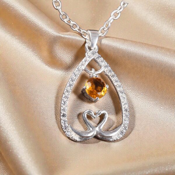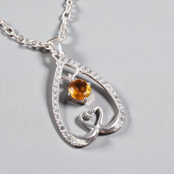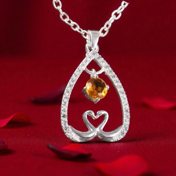 Radiating pure warmth and elegance, the Sevara Sunshine HeartCharm Pendant is crafted in high-quality 925 sterling silver, featuring a sparkling sunshine-toned gemstone suspended gracefully inside a heart-shaped charm. Surrounded by delicately placed cubic zirconia accents, this pendant captures the essence of joy, love, and brilliance in a single design.