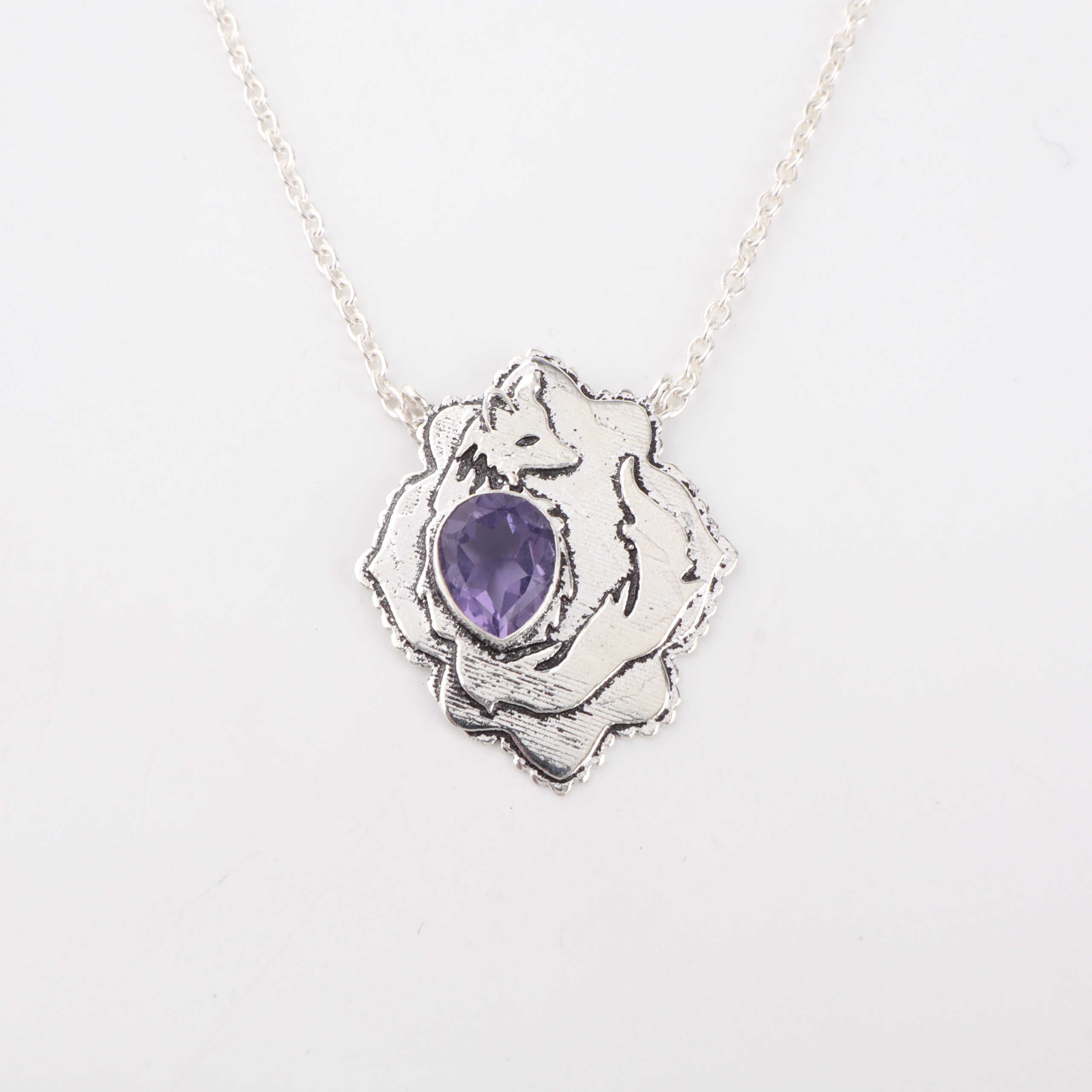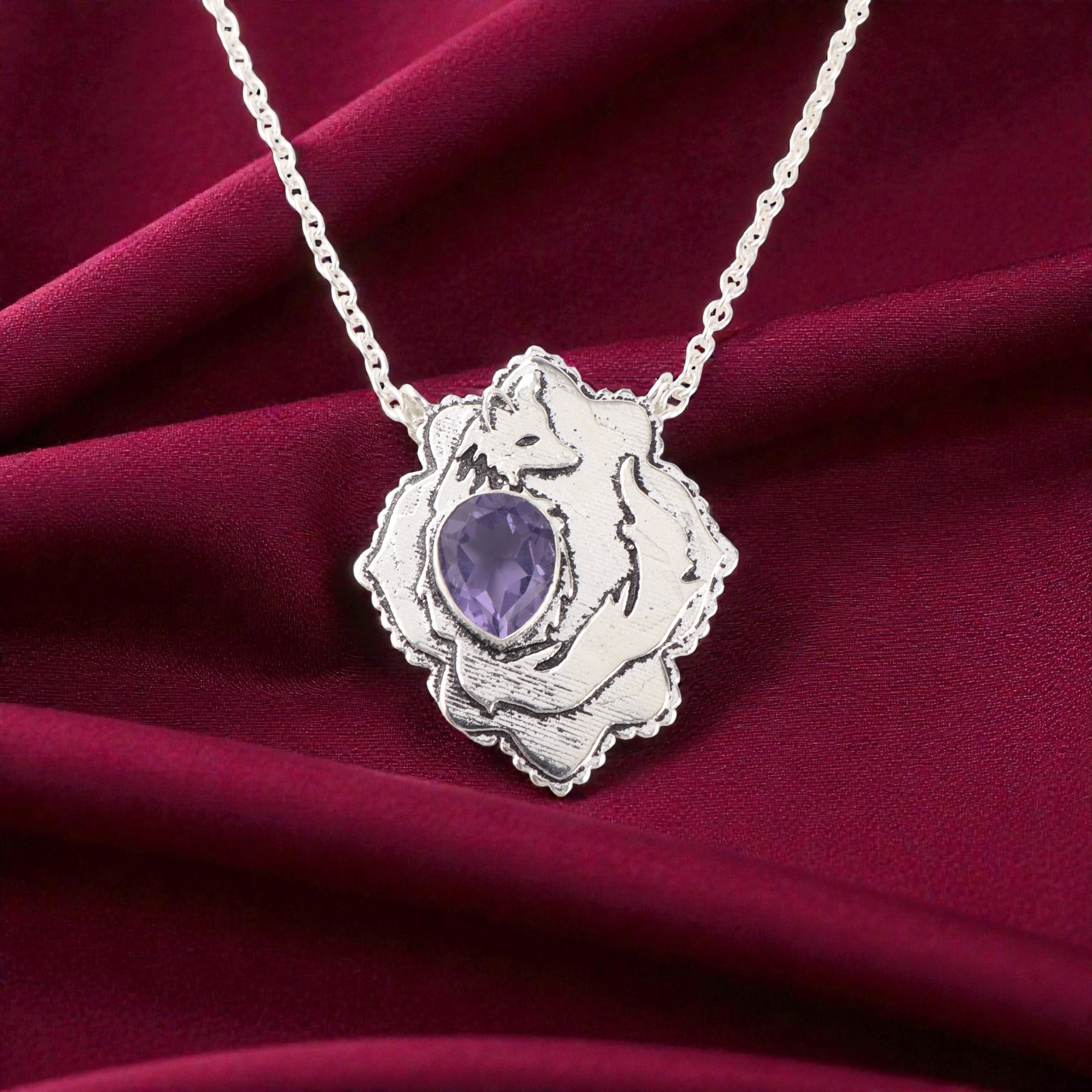 Embrace the magic of elegance with the Sevara Twilight Fox Pendant, crafted in pure 925 sterling silver. The beautifully detailed fox design represents intuition, playfulness, and confidence, while the twilight-purple gemstone adds a touch of dreamy charm.