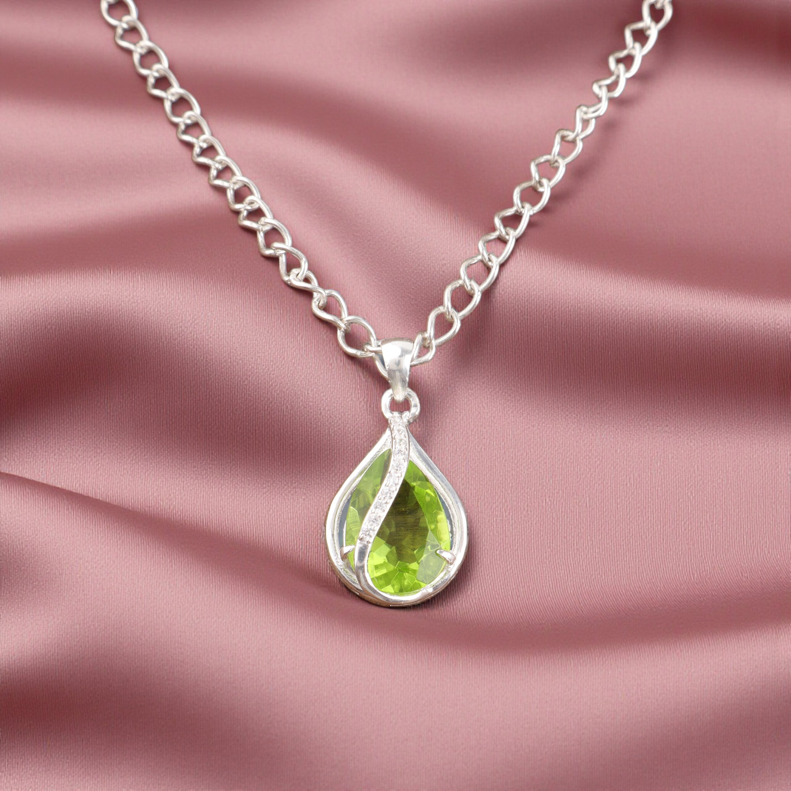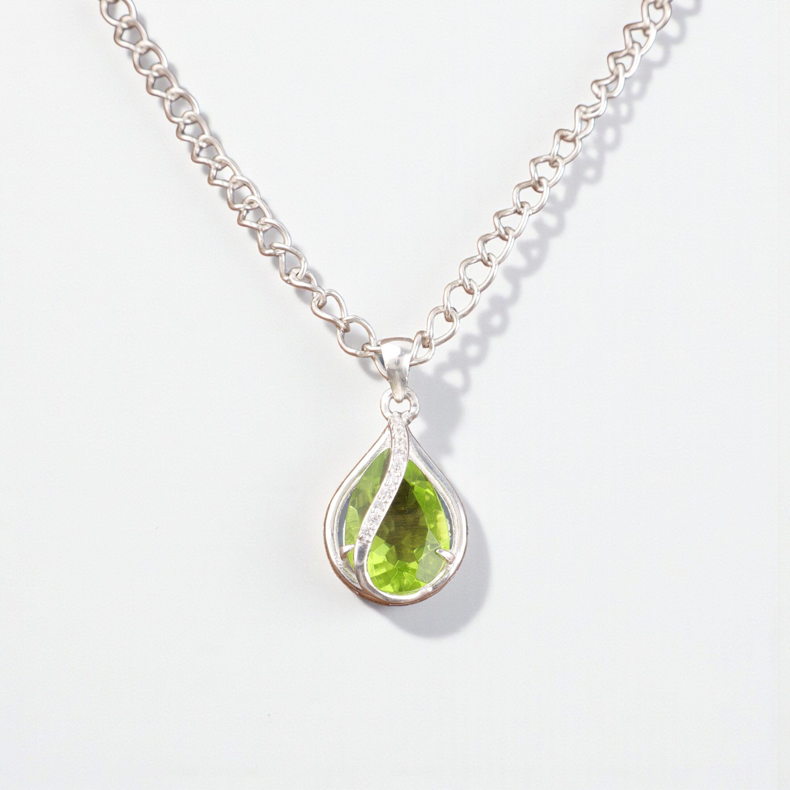 Elegant, refreshing, and timeless — this pendant features a beautifully cut green gemstone embraced by a delicate twisted teardrop frame. Crafted in 925 sterling silver, it adds a graceful sparkle to every outfit, whether casual or festive.